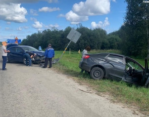 Иномарка и отечественный автомобиль столкнулись на трассе
