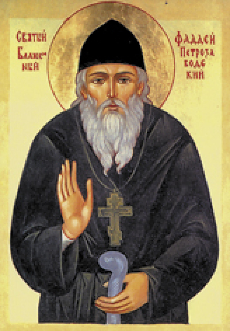 ФАДДÉЙ ПЕТРОЗАВÓДСКИЙ Блаженный (кон. 17 в., близ г. Олонца — 1726, Петрозаводская слобода), местночтимый св., православный подвижник. В Петрозаводской слободе появился в 1706. Жил подаяниями, питался только постной пищей, для обуздания плоти носил власяницу и тяжелые железные вериги с крестом на груди. Помогал людям добрым словом утешения и духовным советом. Юродство блаженного Ф. П. позволяло ему безнаказанно защищать бедных. Cловесные оскорбления в свой адрес и даже побои сносил молча, молясь за обидчиков. Во время очередной встречи с Петром I в 1724 (первая состоялась в 1719) предрек царю близкую кончину, за что был посажен в острог, но вскоре выпущен: предсказание сбылось. От пожизненной пенсии в качестве компенсации за несправедливое заточение отказался. Предсказал также закрытие Петровских з-дов и их восстановление в «большем и лучшем виде» (возникновение Александровского з-да), говорил о том, что в слободе никогда не будет сильных пожаров. После смерти Ф. П. стали почитать как православного подвижника. До 1802 над его могилой близ Воскресенского собора стояла дерев. часовня, к-рая была разобрана при губернаторе А. М. Окулове. Позднее на этом месте поставлен каменный пам. В 1883 по инициативе епископа Олон. и Петрозаводского Ионафана было закончено стр-во каменной часовни в честь cв. апостола Фаддея (разрушена в 1930-х). На нач. 20 в. точное расположение могилы блаженного Ф. П. было неизвестно. Обнаруженная в 2000 могильная плита установлена у Александро-Невского кафедрального собора. Иконописное изображение блаженного Ф. П., к-рый считается покровителем петрозаводских студентов и уч-ся, находится внутри собора. Ф. П. канонизирован 26 окт. 2000. День памяти — 20 авг. по ст. ст. (3 сент. по н. ст.).