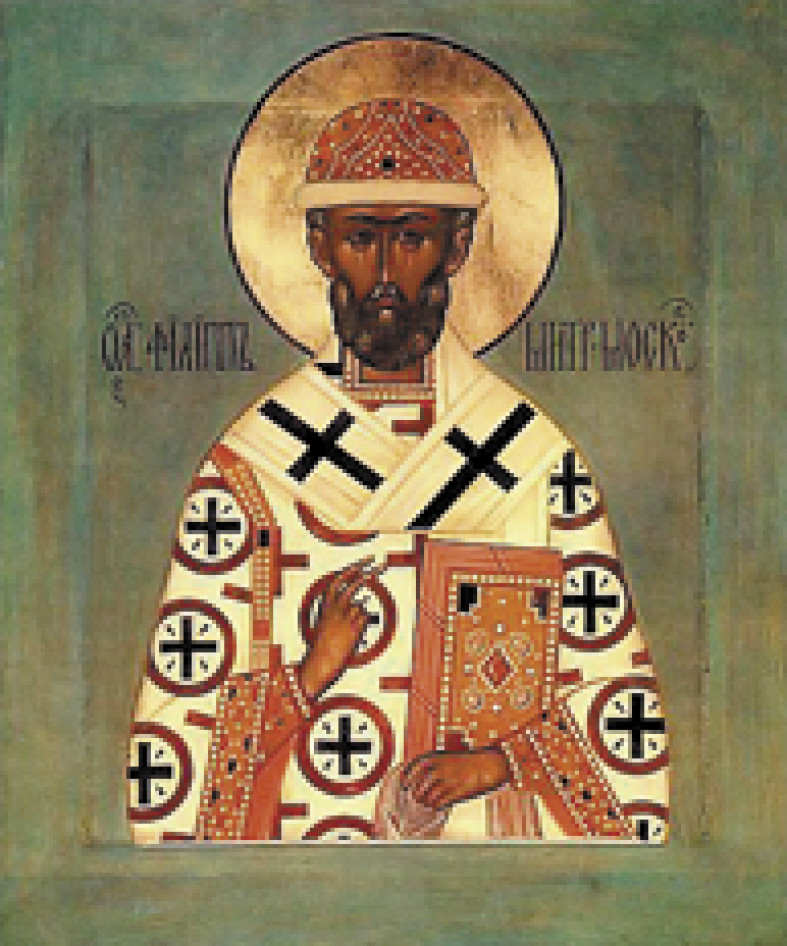 ФИЛИПП, в миру Колычев Феодор Степанович (11.02.1507, г. Москва — 23.12.1569, г. Тверь), святитель, игумен Соловецкий, митрополит Московский и Всея Руси. Происходил из знатного боярского рода, служил при дворе вел. кн. Василия Ивановича. В 1537 отправился в Спасо-Преображенский Соловецкий мон., где, скрыв свое происхождение, в теч. полутора лет проходил разл. послушания: в кузнице, пекарне, на огородах. Затем принял постриг с именем Филипп и на 9 лет уединился на маленьком острове близ обители. В 1548 по желанию братии посвящен в сан игумена; во гл. мон. встал после кончины прежнего настоятеля, игумена Алексия. За время рук-ва Ф. обителью (1548—66) построены гл. храмы мон., жилые и хоз. сооружения. Стараниями святителя Ф. были собраны и записаны все чудотворения преподобных Зосимы и Савватия Соловецких. В 1566 Иван IV Грозный вызвал Ф. в г. Москву, где 25 июня того же года он был возведен в сан митрополита. Ф. осуждал опричную политику царя, за что был смещен с первосвятительской кафедры и сослан в г. Тверь, где 8 нояб. 1568 во время литургии в Успенском соборе был схвачен и заключен в Богоявленский мон. 23 дек. 1569 принял мученическую смерть (задушен М.Скуратовым). В 1591 мощи Ф. перевезли в Спасо-Преображенский Соловецкий мон. В 1652 св. останки были перенесены в Успенский собор Московского Кремля. Дни памяти 9 янв., 3 июля и 5 окт. по ст. ст. (22 янв., 16 июля, 18 окт. по н. ст.).