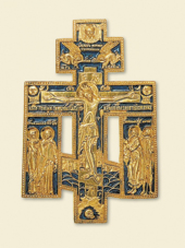 МÉДНОЕ ЛИТЬЁ ВЫГОРÉЦИИ, меднолитые кресты, складни и иконы. Отражают мировоззрение староверов Выголексинского общежительства. Наиб. характерными образцами М. л. В. являются кресты и складни. Выговцы признавали только 1 иконограф. схему распятия ― 3-составный 8-конечный крест. Обоснованию его истинности посвящена ст. в «Поморских ответах». На кресте последовательно расположены знаки Христа (Нерукотворный Образ ― Царь Славы ― IС ХС ― Сын Божий) и текст: «Кресту Твоему поклоняемся Владыко и Святое Воскресение Твое славим». На лицевых оборотах складней встречается рисунок, включающий крест, копье, трость, гору Голгофу в ступенчатом варианте. Это изображение заимствовано старообрядцами с печати, используемой для освящения просфор. В зависимости от формы складня распятие вписывалось то в круг, то в овал, но оставалось неизменным по иконографии.Распространенным является 8-конечный крест «Распятие». На нем, как на иконе, изображена сцена казни Иисуса Христа. На др. типе выговских крестов, киотном, сцена Распятия дополнена 4 фигурами скорбящих, изображенных на 2 прямоугольных пластинах, к-рые примыкают к ср. и ниж. горизонт. перекладинам 8-конечного креста. На левой пластине ― Богоматерь и св. Марфа, на правой ― Иоанн Богослов и сотник Лонгин. Оборотная сторона распятий имеет 3 варианта оформления: гладкий оборот, оборот с буртиком, орнаментированный оборот с буртиком.В худ. проработанности формы кресту наиб. близок 4-створчатый складень «Двунадесятые праздники». Наиб. ранними из изв. датированных являются 3-створчатые складни 1719 (год открытия медни в мужском мон.). Видимо, тогда же началось произ-во меднолитых образов в крупных масштабах и утвержден общий знаковый элемент ― 8-конечный крест, разработаны модели единого прямоугольного формата, к-рые использовались для литья складней и икон, выверено композиционное строение сюжетов. Каждый вид складня имеет свой размер, к-рый зависит от числа створок и кол-ва сюжетов. Складни делятся на 3 гр.: с Деисусом, с двунадесятыми праздниками и со смешанным набором сюжетов. В основе 4-створчатого складня «Двунадесятые праздники» ― форма и содержание одноименного 3-створчатого складня. Прямоугольные створки складня завершаются килевидными навершиями. В них последовательно вкомпонованы сюжеты: Распятие, Новозаветная Троица, Воздвижение Креста Господня. Каждая створка складня благодаря оглавию, на к-ром изображен Животворящий Крест, имеет логический переход к следующей. Авторитет евангельских событий и святых, изображенных на металле, призван был подтвердить правильность позиций старообрядцев, так же, как отсылки к традиц. догматическим текстам подкрепляют доводы выговцев в рукописях. Заставка-рамка на лицевом обороте складня наводит на мысль о прочтении складня подобно книге, с «обложки», т. е. с лицевого оборота, на к-ром изображен 8-конечный Крест Господень ― выговский щит веры, ― сопровождаемый тем же обращением к Спасителю, что и на выговском распятии: «Кресту Твоему поклоняемся Владыко и Святое Воскресение Твое Славим». Представление о спасительности поклонения Кресту, реализованное в распятиях, соотносится с мотивом несения Креста в оглавии створок складня «Двунадесятые праздники», а также на лицевых оборотах всех выговских складней, и является своеобразным символом культуры старов