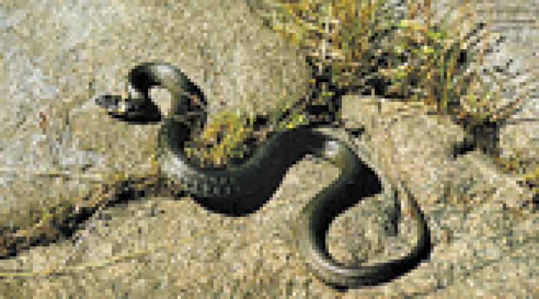 УЖ ОБЫКНОВÉННЫЙ (Natrix natrix), неядовитый предст. отр. чешуйчатых пресмыкающихся. Дл. тела до 1,3 м. Отличительный признак — пара желтых или оранжевых пятен на затылочной ч. головы. Окраска черная, оливковая, реже пестрая. В случае опасности У. о. предпочитает побыстрее скрыться. Питается в осн. лягушками, жабами, рыбой, поэтому обычно обитает около воды — по берегам болот, рек, канав. Заглатывает добычу живьем. Встречается только в Приладожье (до пос. Лоймола). Распространение У. о. на С. ограничено, т. к. местный короткий теплый период недостаточен для развития зародышей. Числ. очень низкая.