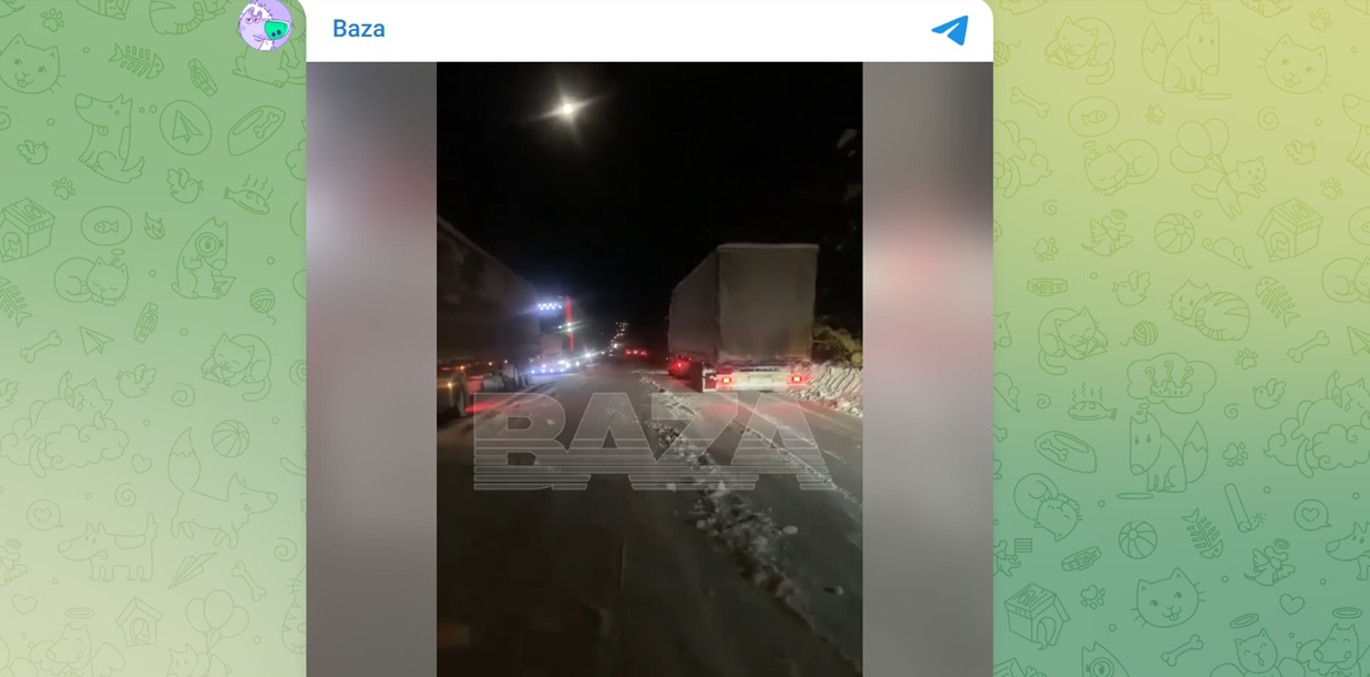 Затор растянулся примерно на 100 километров, возможности проехать ждут около десяти тысяч автомобилей, сообщает телеграм-канал Baza. По словам водителей, пробка сохраняется в том числе из-за того, что как только начинается движение, некоторые выезжают на встречку и застревают, в итоге снова пробка.