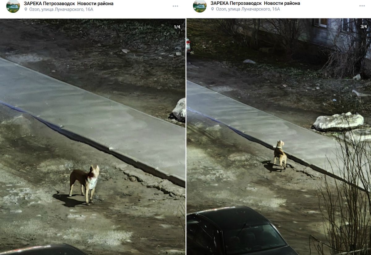 «На Зареке в районе Луначарского 16а бегает собака без хозяина, уже напала на девушку и маленькую собачку. Хозяева найдитесь, пока беды не случилось»,