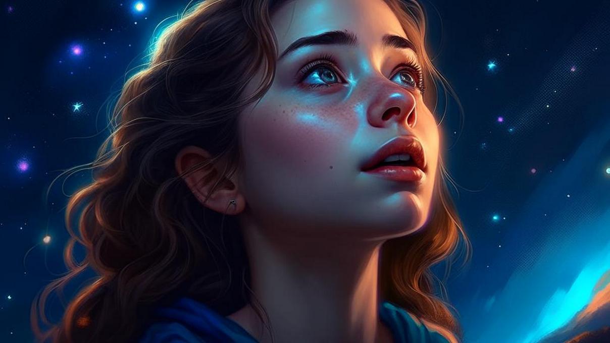 девушка смотрит в ночное небо