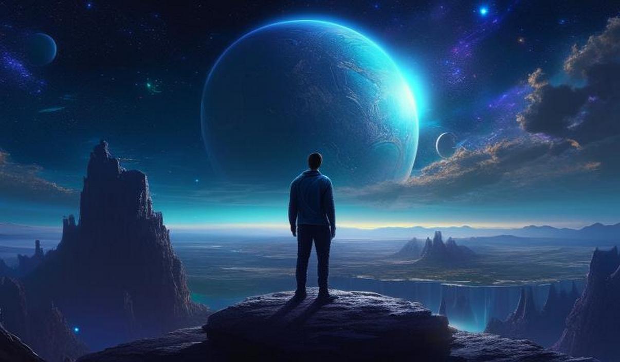 мужчина на фоне космоса