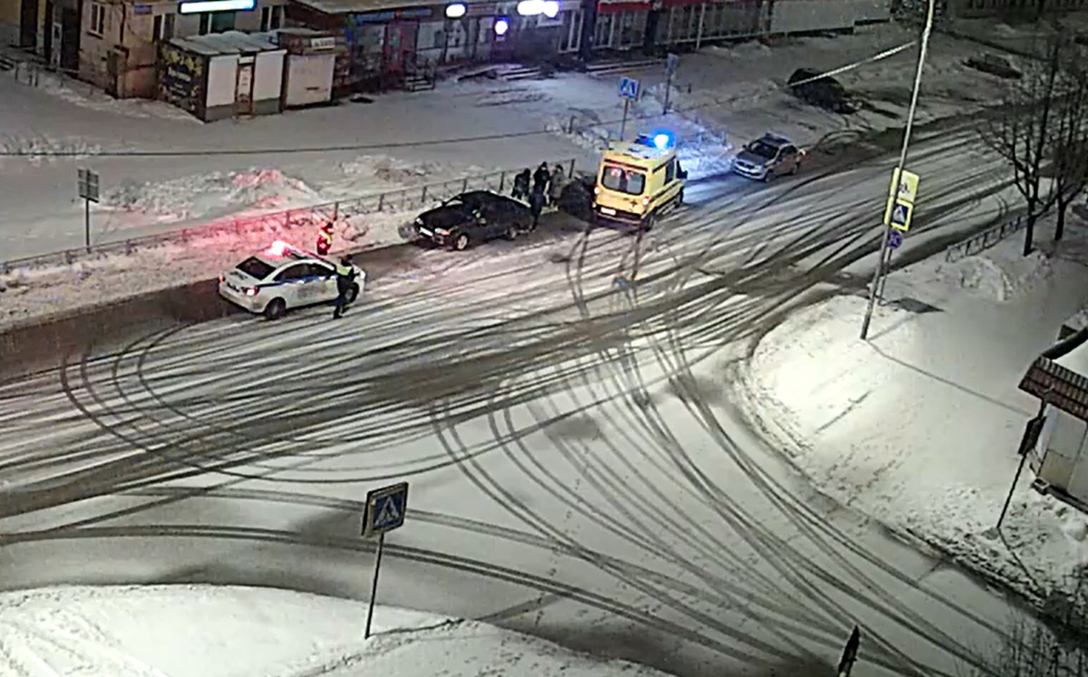 Камера наблюдения запечатлела аварию на пешеходном переходе в районе улиц Калинина-Пролетарская ночью 1 марта.