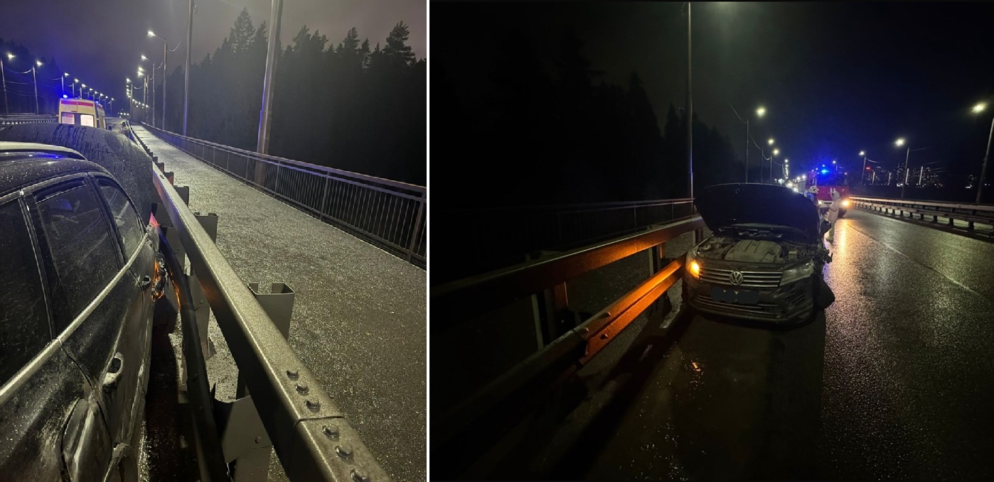 Автомобиль Volkswagen влетел в ограждение моста в Петрозаводске