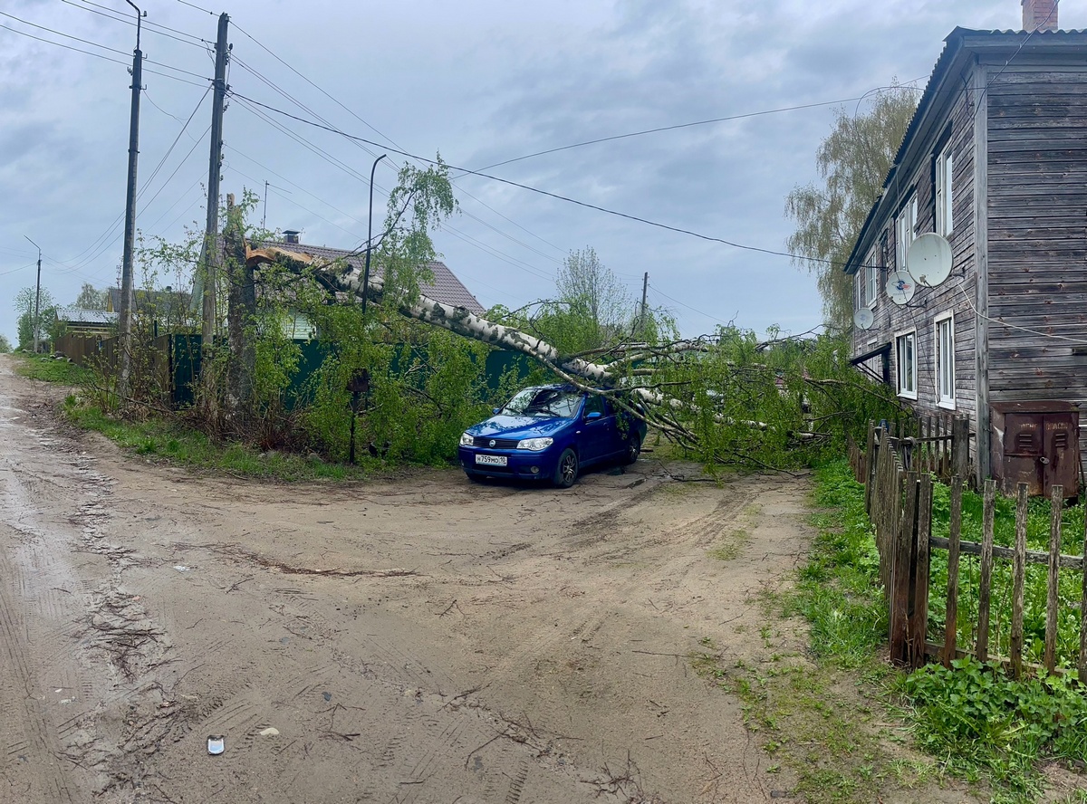 В мае прошлого года на автомобиль, припаркованный около многоквартирного дома на улице Первомайской в поселке Пряжа, от порыва ветра рухнуло дерево. Толстая береза упала на припаркованный автомобиль и перегородила вход в подъезд.
