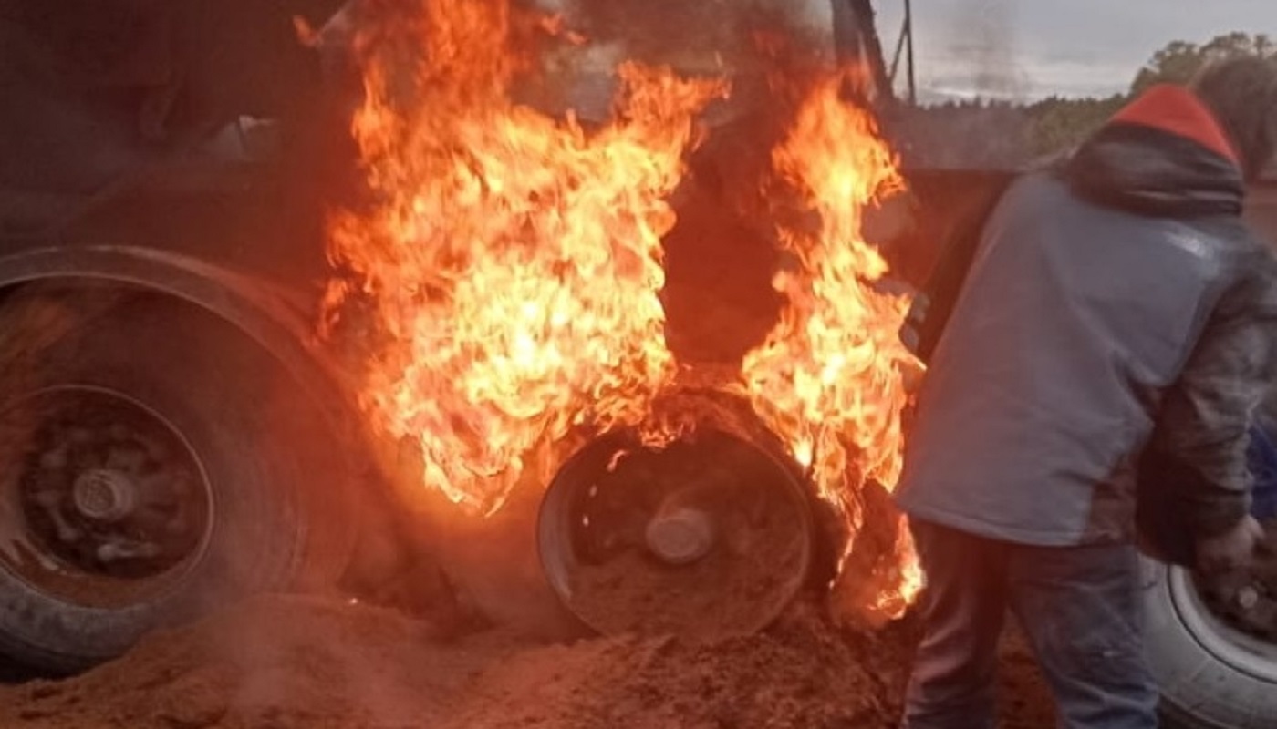 По данным источника, горели колеса и крылья автомобиля Scania. Благодаря тому, что водитель сразу бросился гасить огонь, больших бед удалось избежать.