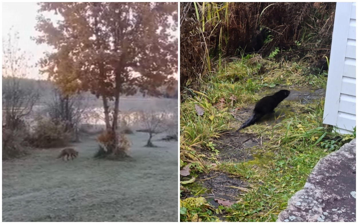 «Норка стала у нас нередким гостем. У нее, видимо, повреждены задние лапки, она передвигается только при помощи передних.. Норка искупалась в нашем пруду, не обращая на нас никакого внимания. Лиса приходит к нам на участок — ее удалось снять из окна. Пришла, поела терн под деревьями и ушла»,
