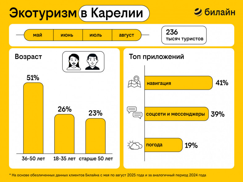 В исследовании использовались обезличенные данные клиентов Билайна с мая по август 2025 года и за аналогичный период 2024 года.
