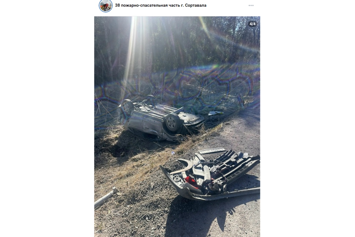 Легковушка легла на крышу у поворота на кладбище в Карелии