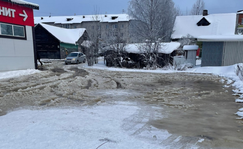 В Суоярви коммунальная авария превратила улицы в болото, а жители остались без воды.