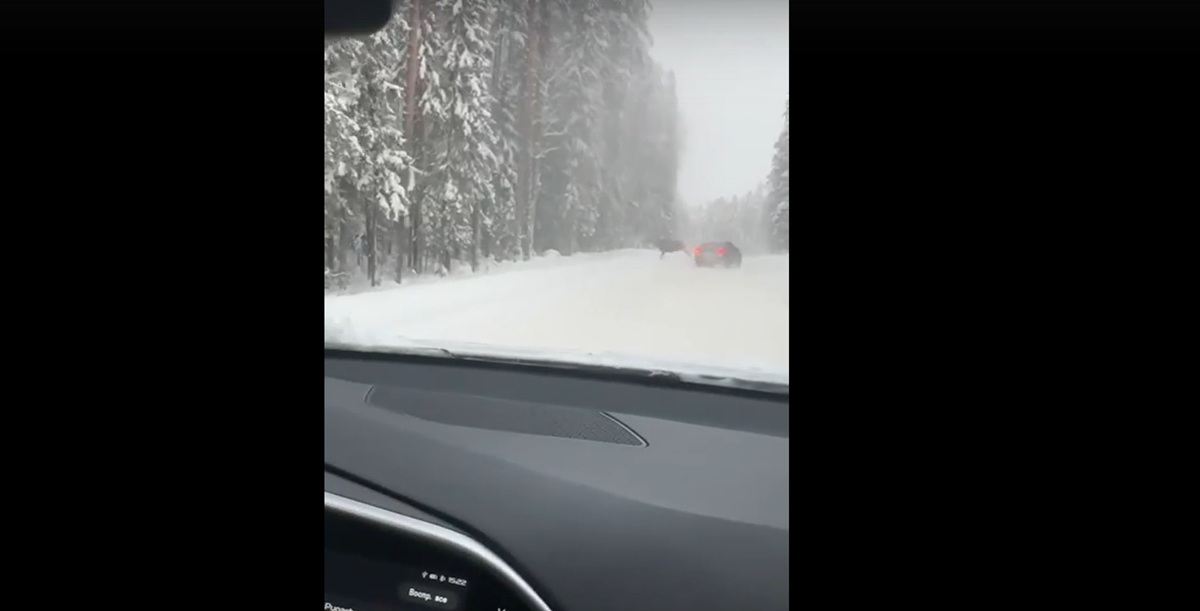 В светлое время суток лось выбежал на дорогу, ведущую к горнолыжному центру в Ялгоре.