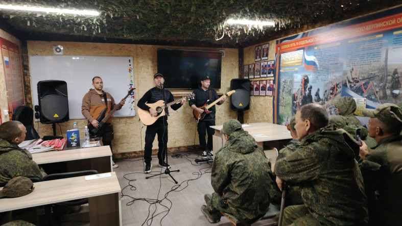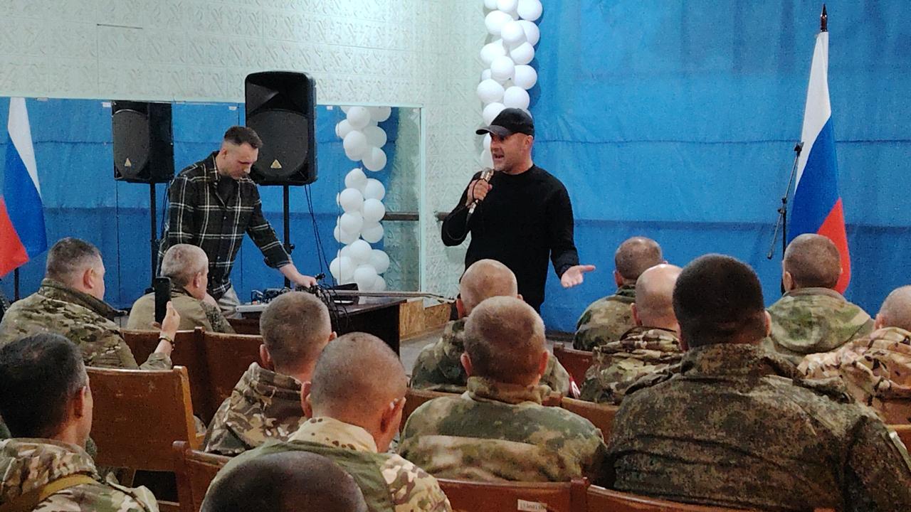 - В этот раз ездил с победителями конкурса патриотической песни «Россия - это мы!» - группой «Музыкальный рубеж» из Мурманска. Впервые был в роли играющего тренера - одновременно продюсера и исполнителя. С нами также ездили волонтёры из Екатеринбурга, они развозили маскировочные сетки по частям. По дороге к Донецку побывали на «Саур-могиле». Вдохновляющее место с тяжёлой историей. Там и у мемориала «Острая могила» в Луганске снимали кадры для клипа на песню «Героем надо быть», с ней мурманские музыканты и победили в конкурсе.