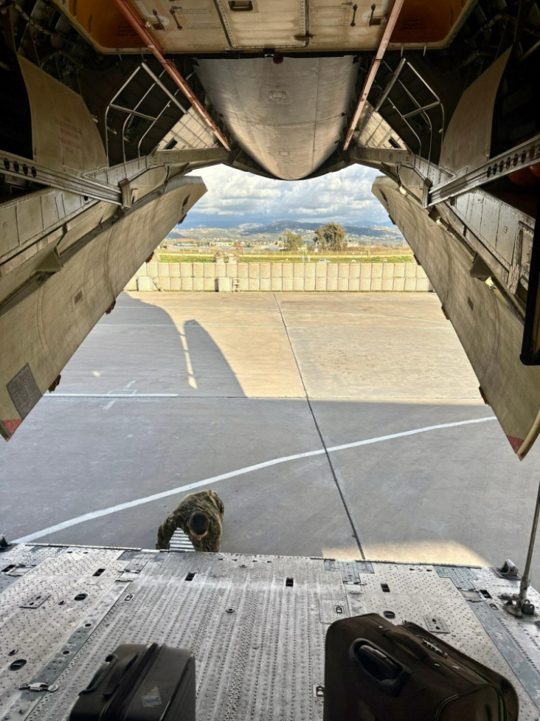 Между авиабазой и морским портом мы летали на военных вертолётах с сопровождением. Очень впечатляет. Девушки были в восторге, особенно во время полёта над Средиземным морем. Посмотрите небольшое видео из полёта.
