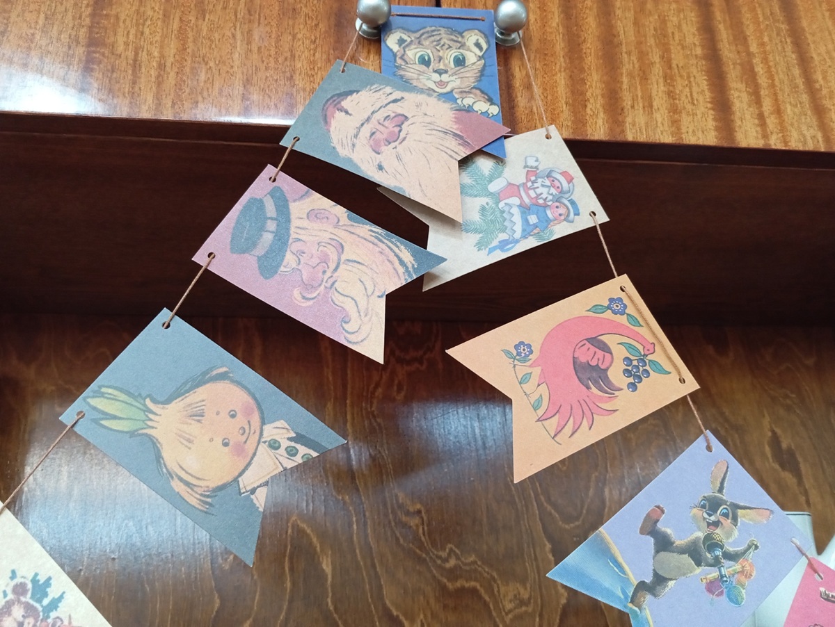 Для детей организовали мастер-класс по созданию советской гирлянды из бумажных флажков — простого и любимого символа Нового года.