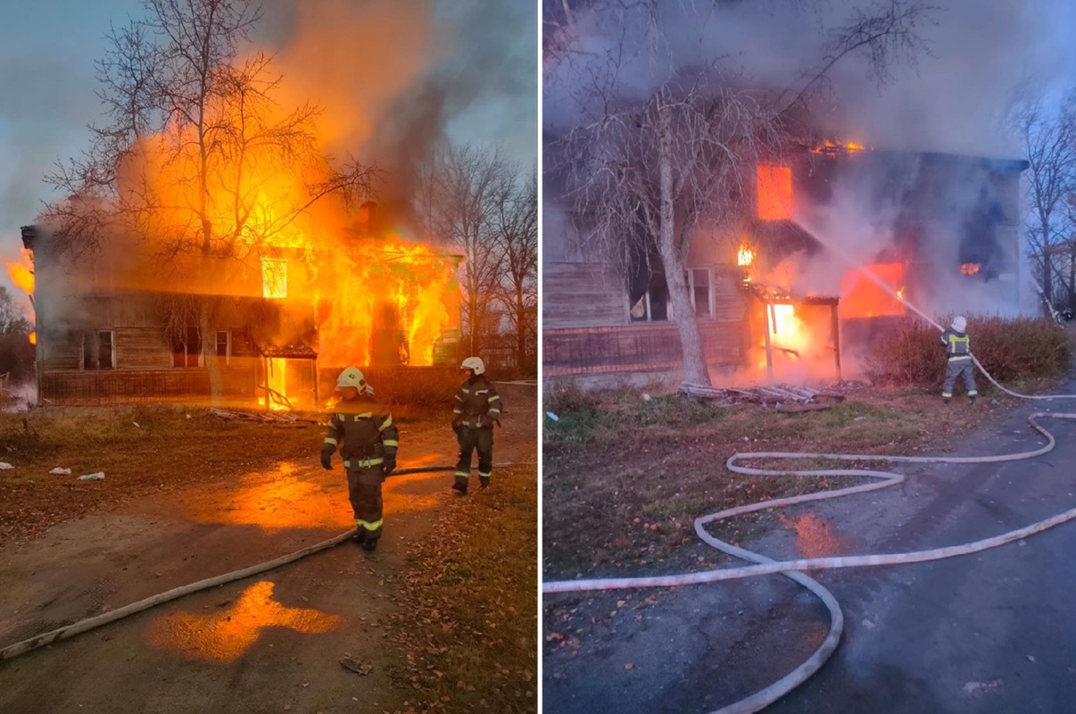 В Карелии пожарных подняли по тревоге утром 19 октября из-за возгорания в Суоярви. Мощное пламя поглощало старую деревяшку на Советской улице.