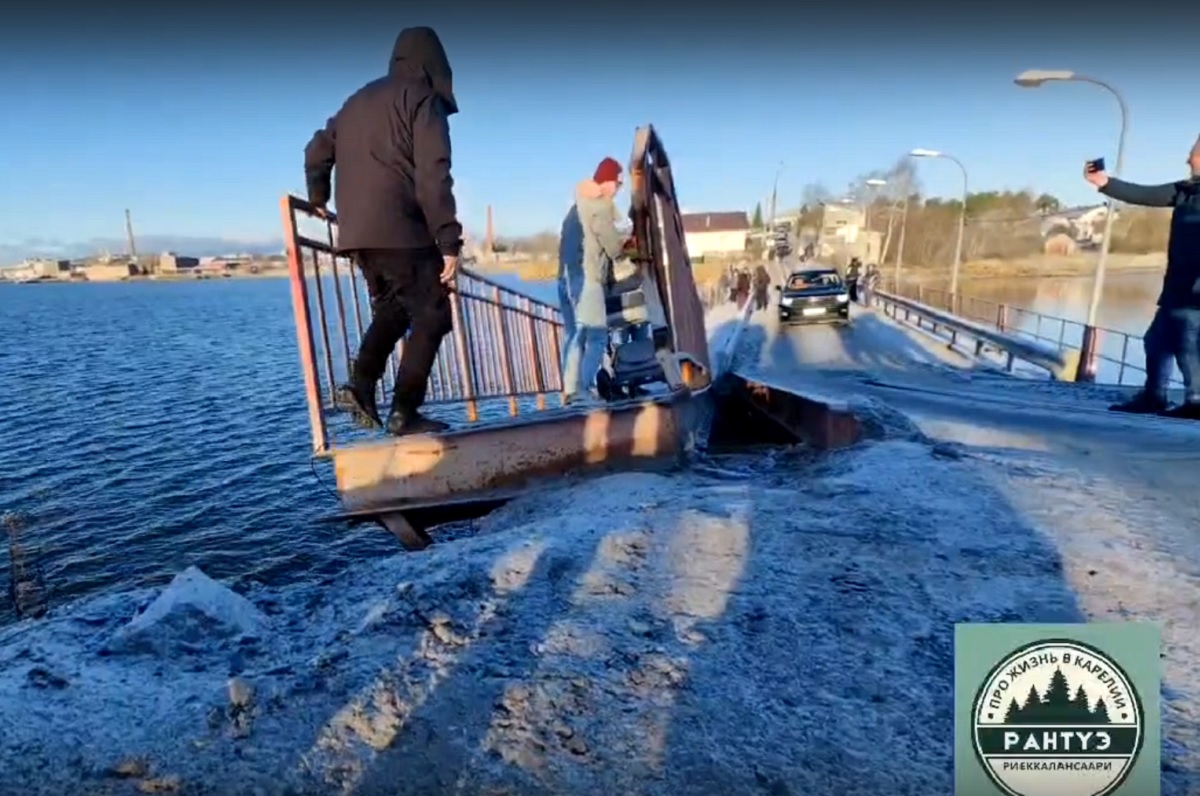 Речь идет о переправе на популярный у туристов остров Риеккалансаари. В ноябре 2025 года мост перекосило так, что на него с трудом заезжали автомобили, а пешеходам приходилось еще сложнее.