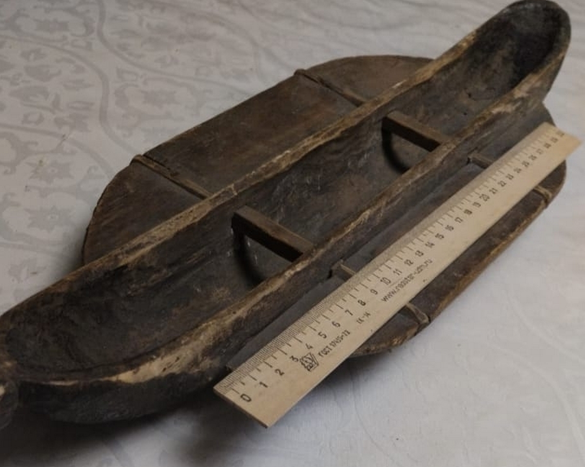 «Эта модель совсем небольшая. В длину около 30-40 сантиметров. Хранилась в нашем небольшом фонде с другими бытовыми крестьянскими предметами, не имеющими отношения к заводской истории. В экспозиции данные предметы не использовались. Возможно, такую лодочку сделал кто-то из заводских умельцев»,