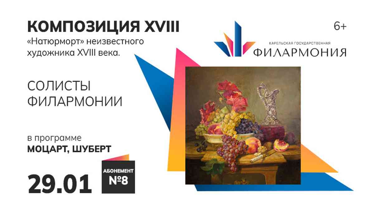 На концерте «Композиция XVIII» будет демонстрироваться картина «Натюрморт» неизвестного художника XVIII века. О картине расскажет сотрудник Музея ИЗО.