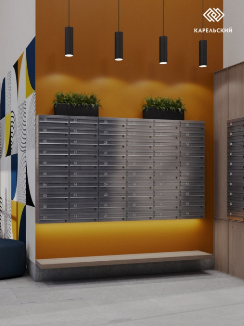 Внутри подъезда предусмотрены практичные решения: кладовые и колясочная для хранения сезонных вещей, садового инвентаря и детских колясок. Отдельного внимания заслуживает лапомойка — удобное приспособление для ухода за домашними питомцами, помогающее сохранять чистоту в подъезде и квартирах.