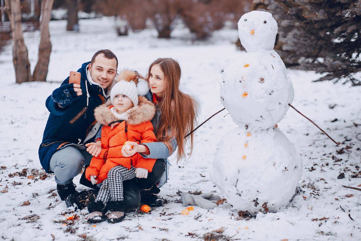 семья слепила снеговика