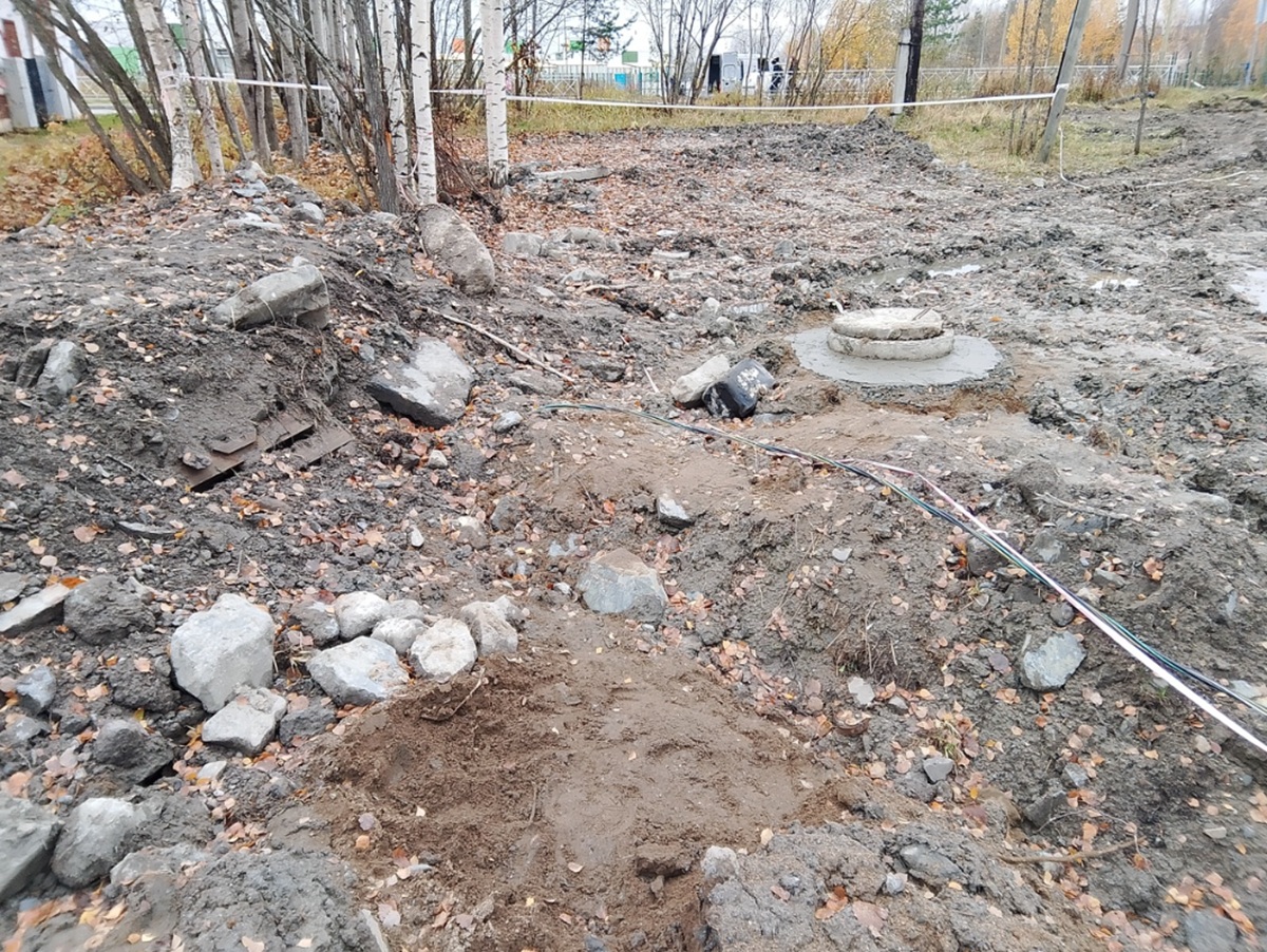 На опасное место обратили внимание активные жители прионежского села. По их словам, участок перекопали, когда прокладывали трубу к школе. После работ на земле оказались электрические провода.