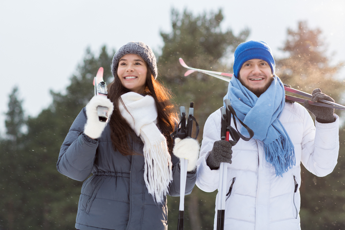 мужчина и женщина с лыжами