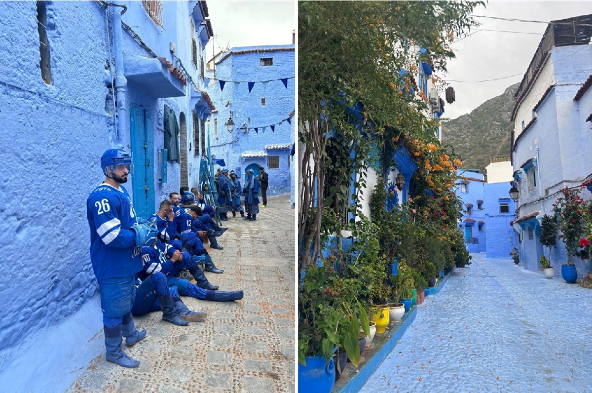 Туристы из Санкт-Петербурга увидели съемочную площадку в синем городе. Именно так называют город Шефшауэн в Марокко. Он известен своей архитектурой и тем, что почти все здания и дороги окрашены в синий или голубой.