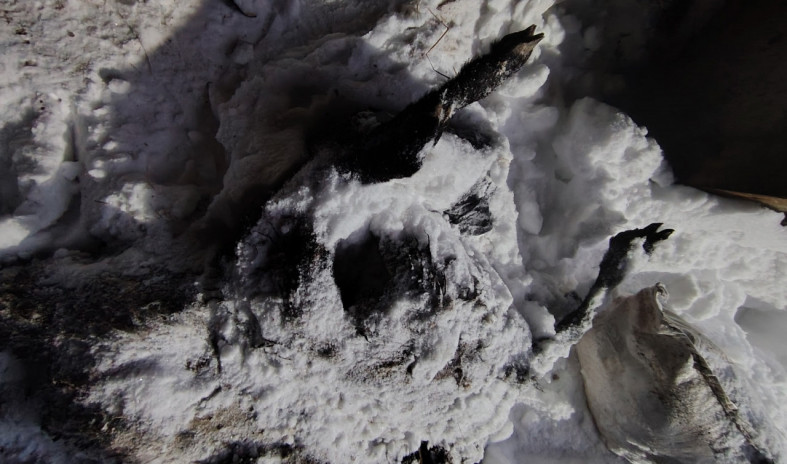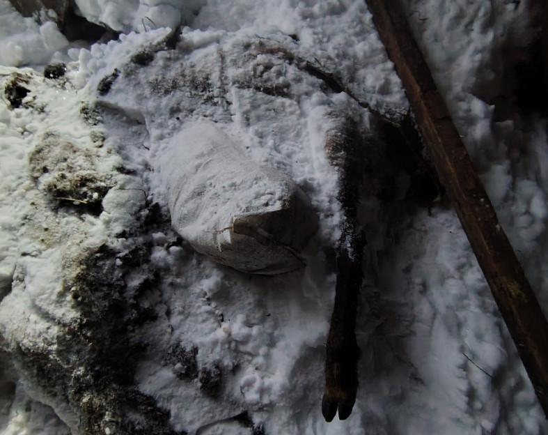 «Непонятная территория. Обнаружила кости и черепа животных. Много отходов их жизнедеятельности. Стоит полуразрушенное здание, смотрю - копыта торчат. Три трупа: то ли козлята, то ли ягнята. Картонками их прикрыли, снег припорошил. Рядом дверь без замка»,