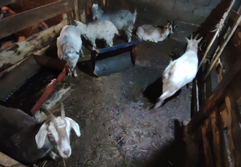 На самой «ферме» было две коровы, несколько овец, коз и их детеныши. Грязные, замученные, признаков корма в корытах не было. Стояла жуткая вонь, и наглядно было видно, откуда она исходит - стойла никто и никогда не чистил.