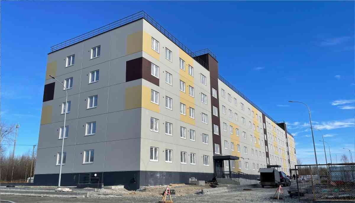 Новый дом строится в рамках программы расселения из аварийного жилья и располагается на улице Строительной в Беломорске поблизости от 132-квартирного дома, построенного «КСМ» в 2023 году. Визуально дома похожи: 5 этажей, 3 подъезда, общая площадь – чуть больше 8 тыс.кв.м, аналогичное цветовое решение фасадов.