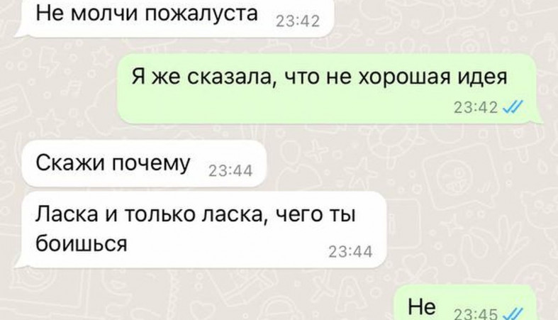 В частности, тренер спрашивал у девушки, девственница ли она, и, получив утвердительный ответ, интересовался, не хочет ли она лишиться девственности. Вика отвечала отрицательно, но это не остановило мужчину. Он просил выслать ему «крутое» фото , предлагал ласку, «замутить», написал: «У меня башка от тебя едет». В общем, маме Вики было от чего впасть в шоковое состояние. Так как свои сообщения тренер быстро удалял, Вика стала делать скриншоты. Олеся Анатольевна сказала, что дочь была запугана, и предложила сразу идти в полицию.