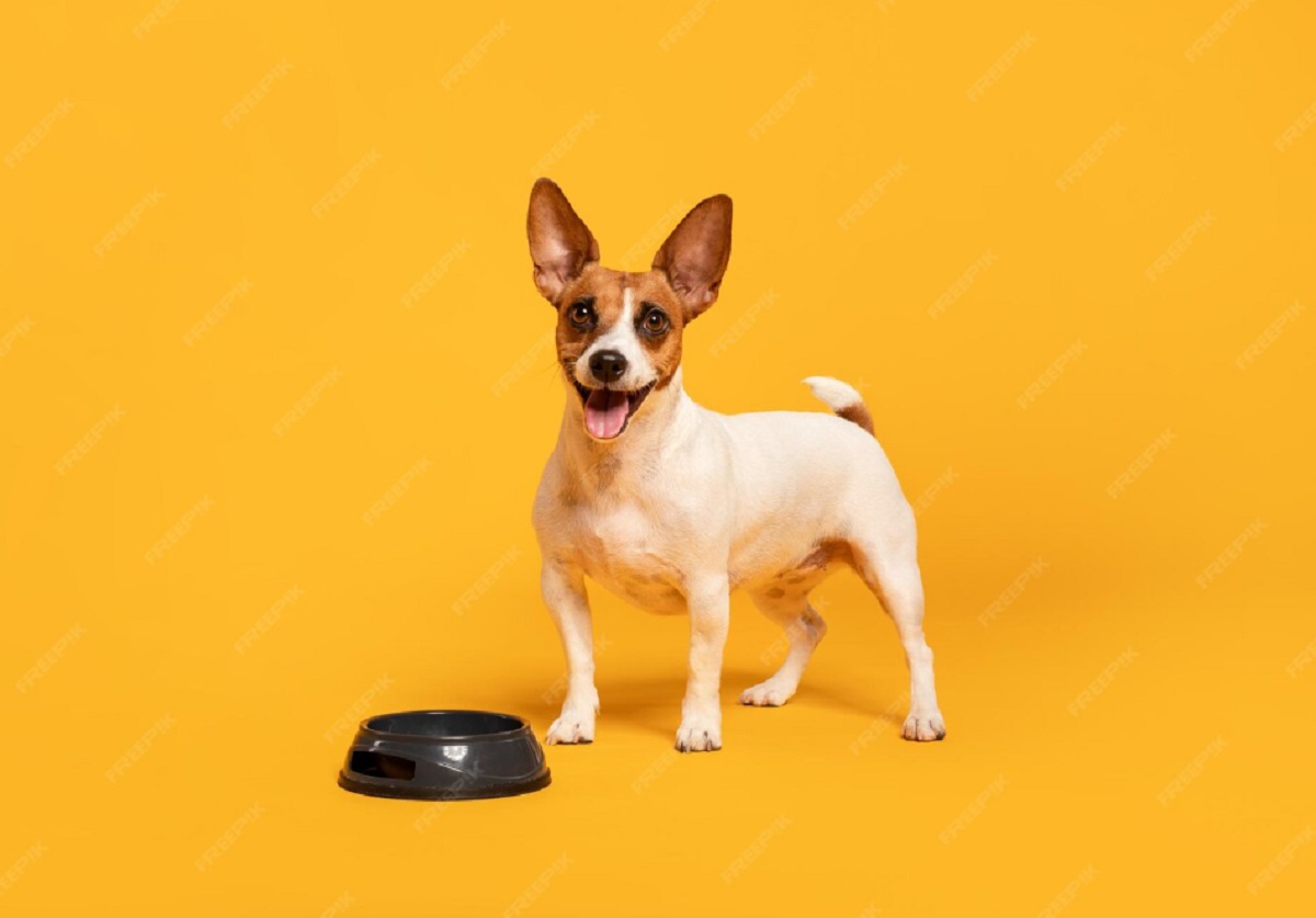 собака у миски