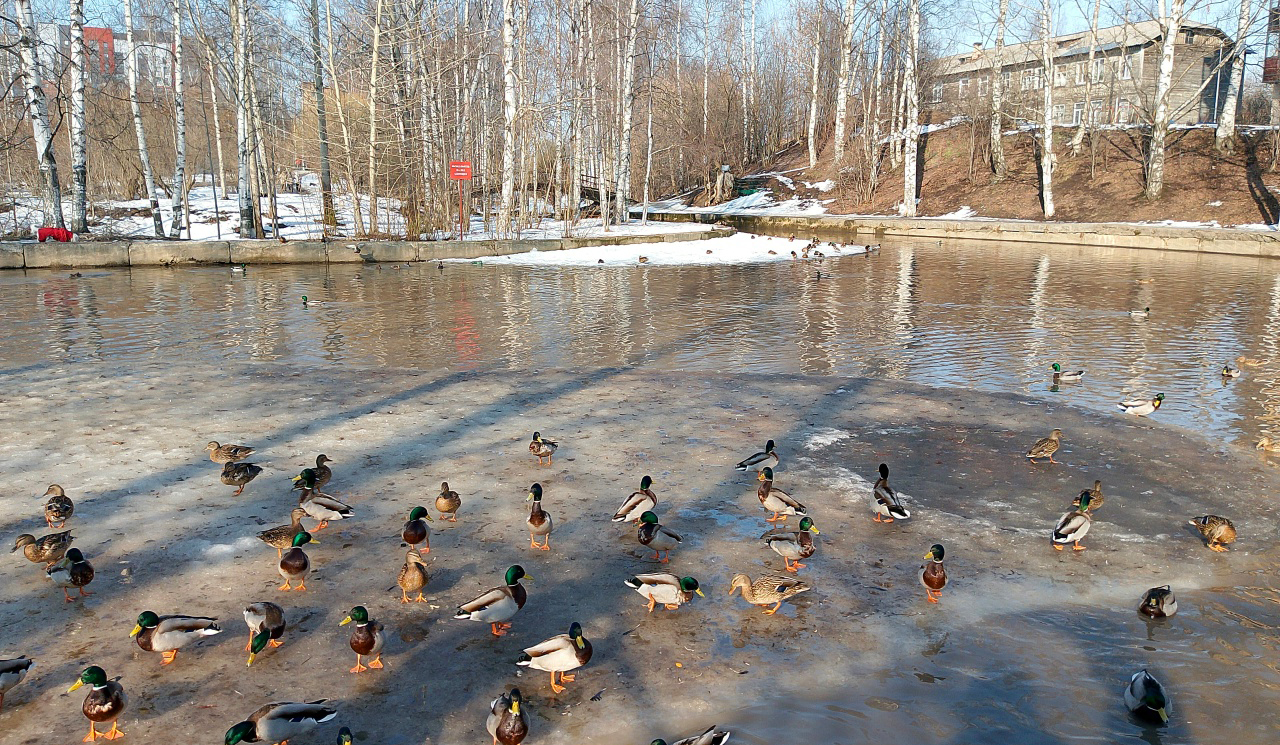 Весенняя речка с утками.