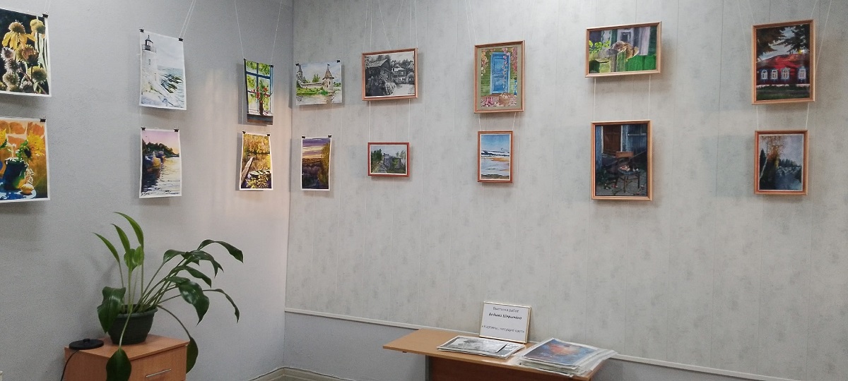 В библиотеке карельского села открылась выставка Вадима Шершнева из поселка Хелюля
