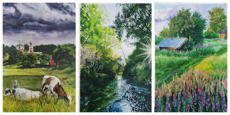 В экспозиции сорокалетнего автора — почти восемь десятков произведений, выполненных в различных техниках: карандаш, пастель, акварель и акрил. Картины, созданные на бумаге и холсте, представляют родную Карелию. Зрители видят спелые яблони и,кажется, чувствуют их аромат, беззаботных детей, играющих с котятами, мирно пасущихся коров на лугу и старинные церкви, хранящие истории прошлых лет.