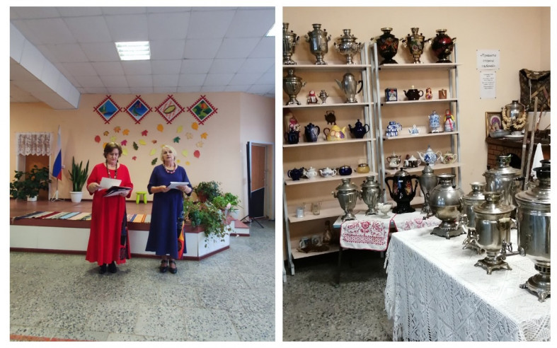На новеньких стеллажах крошнозерцы разместили необычную выставку самоваров. Глаз посетителей радовало и удивляло невероятное разнообразие экспонатов: здесь были и вещи с историей, и совсем новые, и большие, и маленькие, и те, что слепили блеском, и те, что покорили росписью.