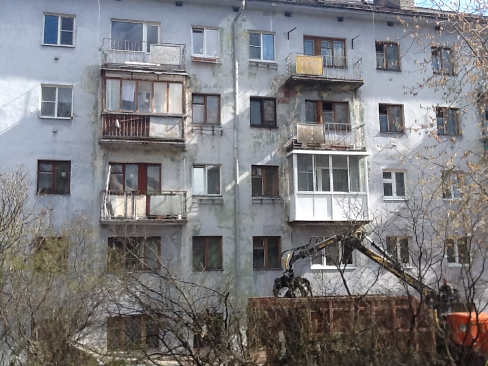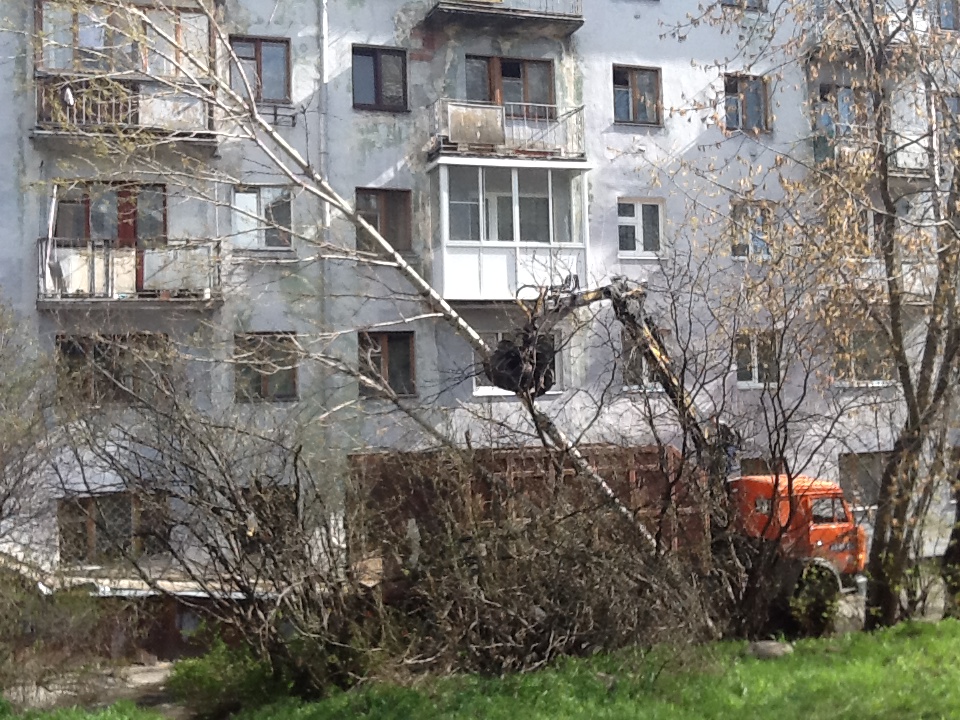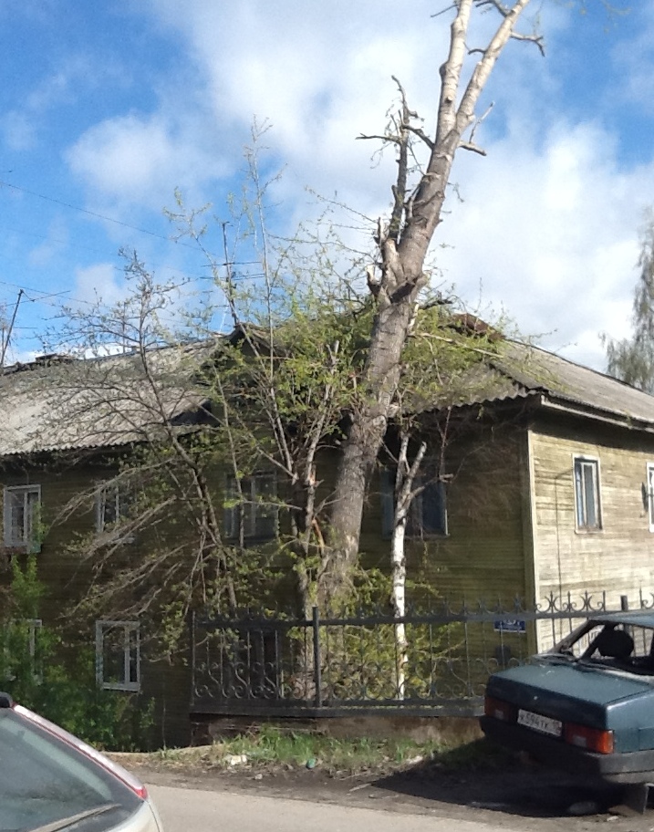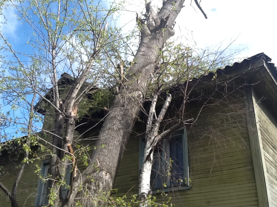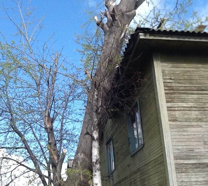 Ночью, 13 мая, огромный тополь упал на дом № 25 по пр. Первомайский. По счастливой случайности никто из жильцов не пострадал – дерево не разбило ни одного окна, лишь помяло подставку для цветов.