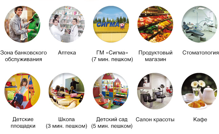Магазины, рестораны, кафе, гипермаркеты, бассейны, детские городки, спортивные площадки, уличные тренажеры, развлекательные и спа-центры, медицинские учреждения, аптеки, офисные помещения – вся инфраструктура и развлечения находятся рядом с домом. Даже центр города не может похвастаться такой комплексностью и удобством. Современный стандарт жизни – тишина и отстраненность от оживленных магистралей, и возможность провести досуг рядом с домом.