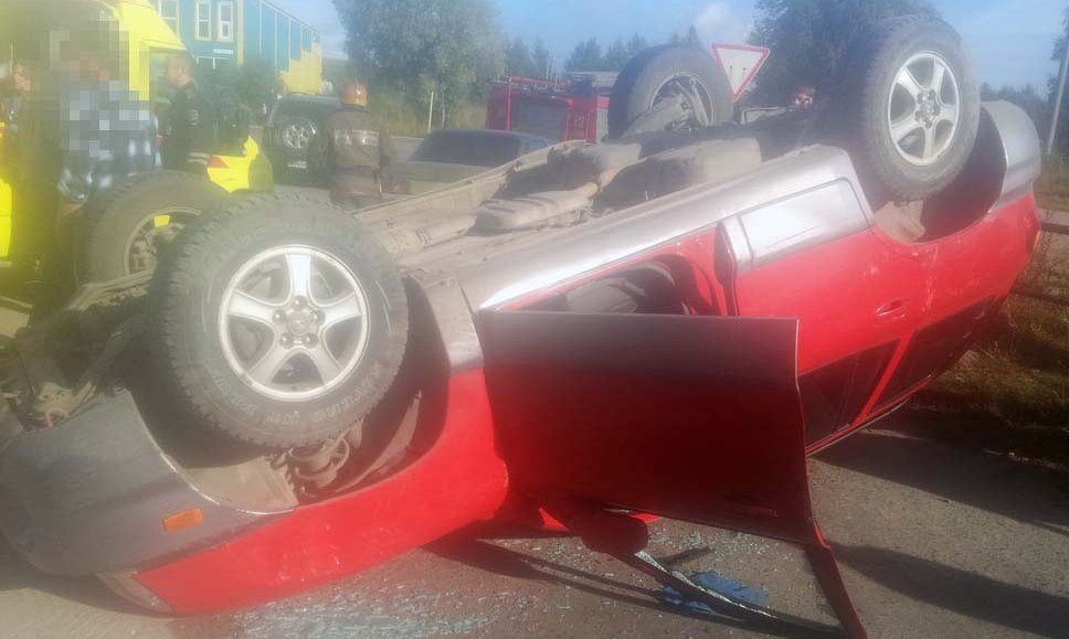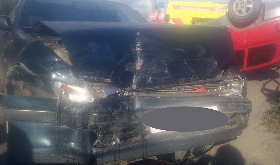 Кроссовер перевернулся на крышу после удара легковушки