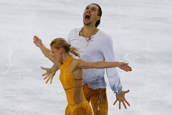 Татьяна Волосожар и Максим Траньков, на классе справившись со своей задачей в командном турнире, выходили на произвольную программу с целью опередить извечных соперников из Германии – Алену Савченко и Робина Шолковы. Груз ответственности, лежавший на них несколько лет, не сковал движения партнеров, и пара великолепно откатала произвольную, оставив соперников далеко позади.