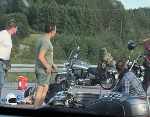На севере Карелии мотоцикл BMW оказался в кювете...
