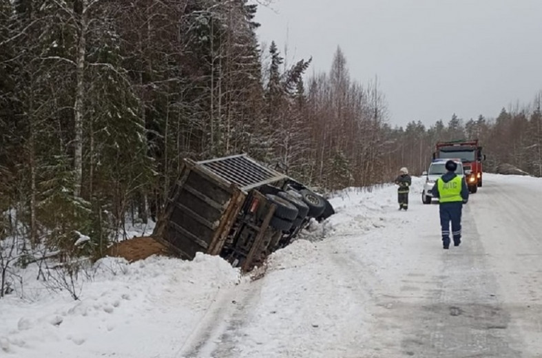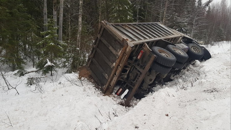 Самосвал перевернулся недалеко от поселка Эссойла