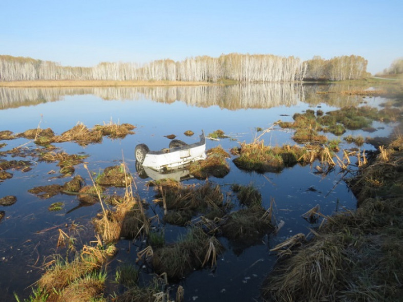 Автомобиль съехал с проезжей части, опрокинулся на бок в кювет, заполненный водой. В результате инцидента никто не пострадал.