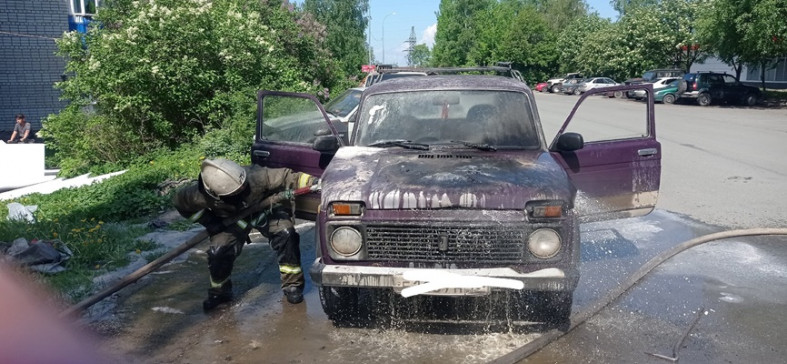 Судя по фотографиям, автомобиль остался цел, но о случившемся напоминает почерневший от воздействия огня капот. // фото VK-паблик «Пожарная часть-75 Соломенное»