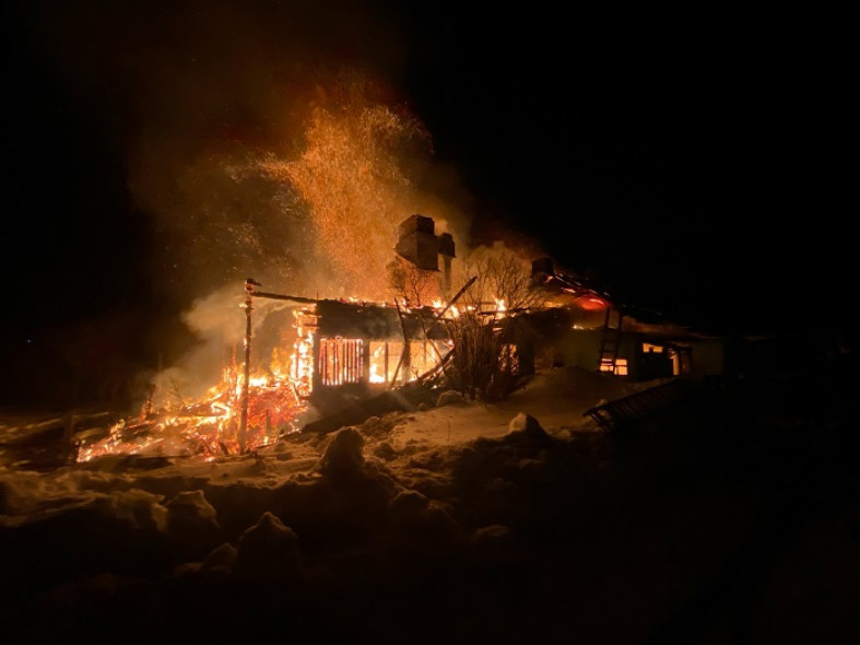В интернете появились фотографии с места сильнейшего пожара, произошедшего в ночь на 20 февраля в поселке Вяртсиля в Сортавальском районе. Они опубликованы в сообществе пожарно-спасательной части №40.