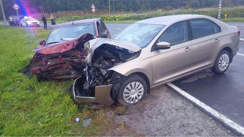 Три автомобиля попали в жесткую аварию на «Коле» в Карелии