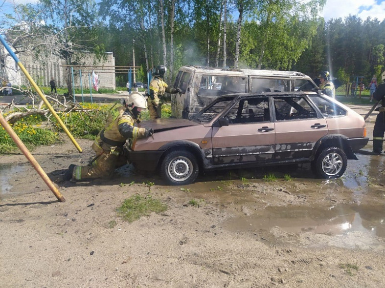 Два автомобиля сгорели во дворе пятиэтажки в Надвоицах